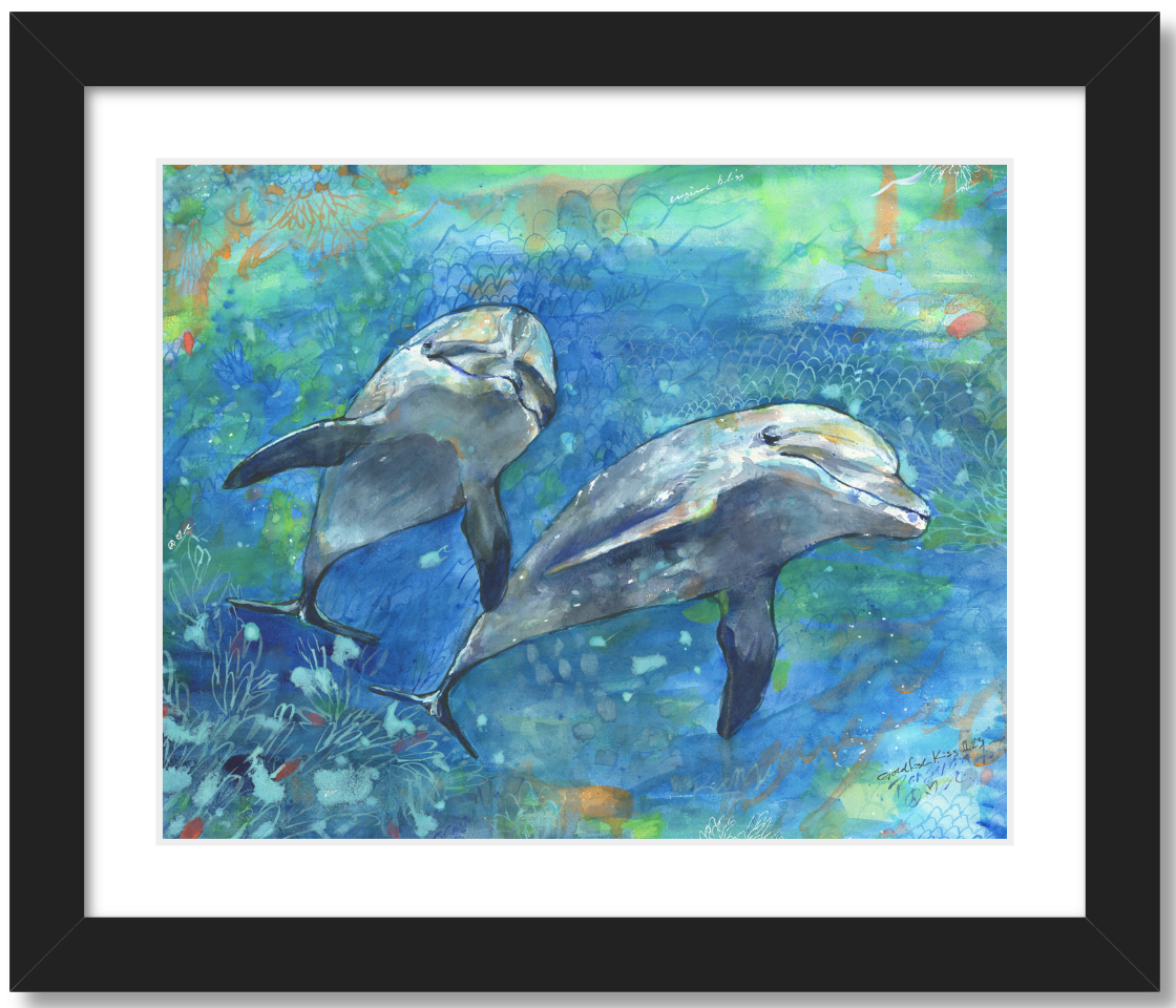 Swimming with these guys at the pass in Rangiria was pure bliss, I had to try and paint it. Merci to poema for the pic!